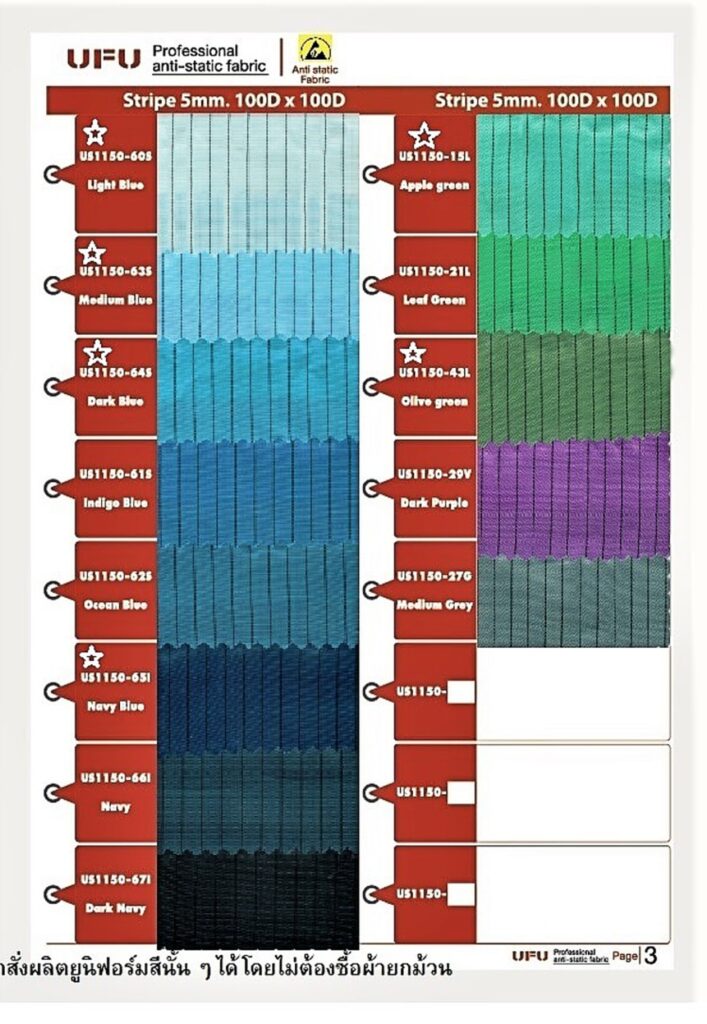 แคตาล๊อกสีผ้า และรหัสสีผ้ากันไฟฟ้าสถิตย์ Anti-static คลีนรูม ตามด้านล่างนี้